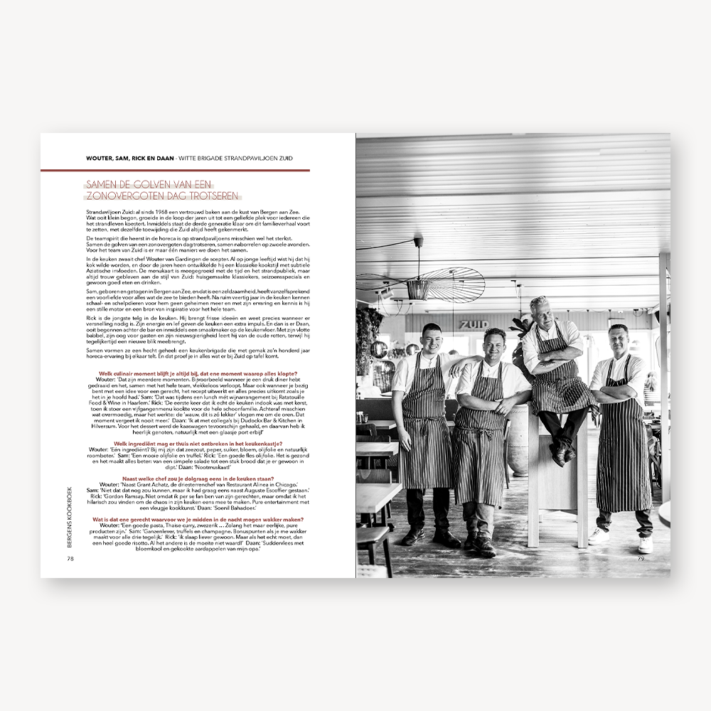 Met 44 recepten van 36 chefs zet je met Bergens Kookboek altijd wat lekkers op tafel. Het boek is voorzien van een hardcover wat, samen met de ‘glimmende vis’ en het leeslintje, voor een luxe uitstraling zorgt. Inspiratie genoeg met 192 pagina’s lees- én kookplezier. Een showstopper, onmisbaar in elke keuken!